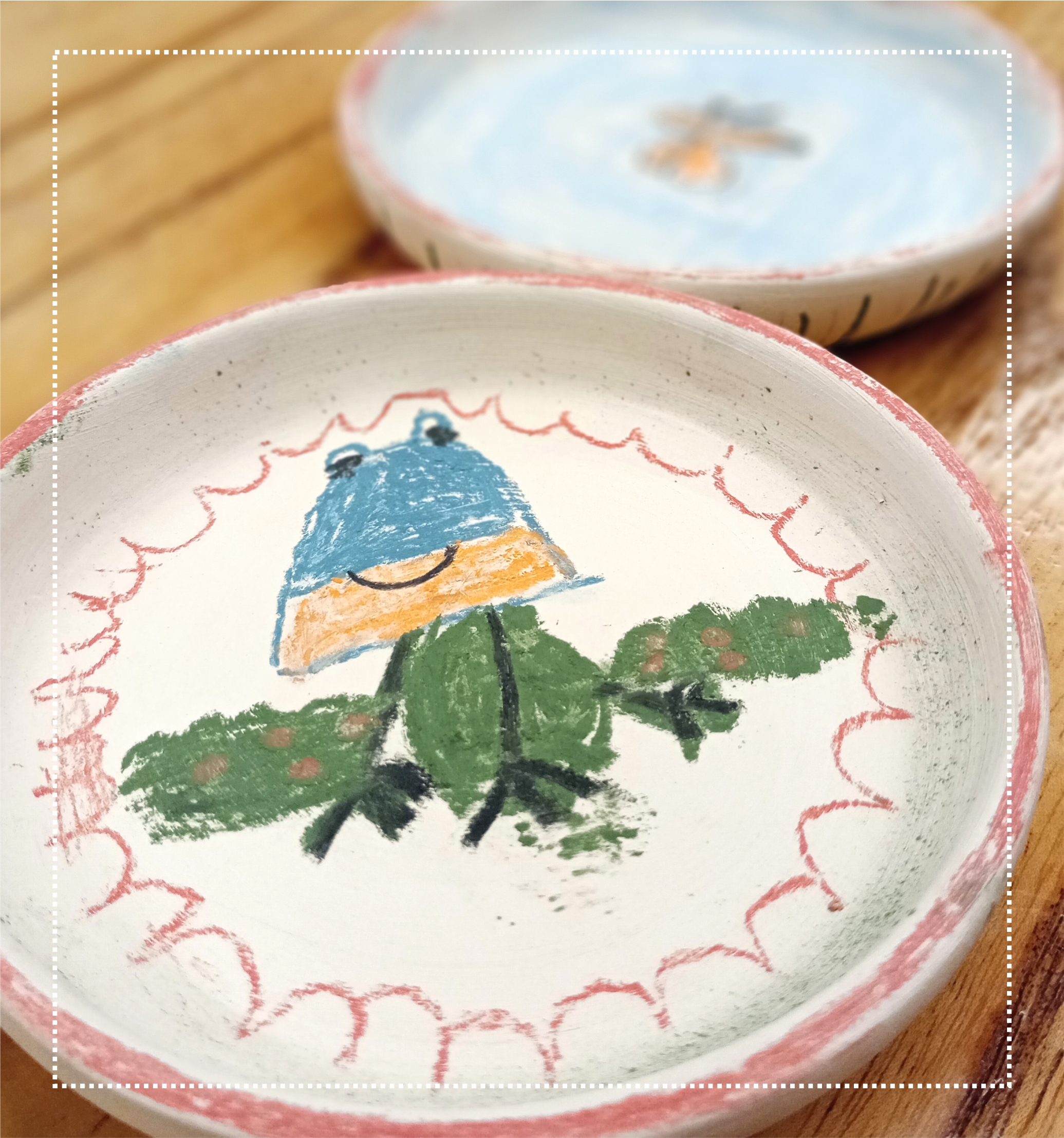 🎨 2 piezas con distintas técnicas: modelado de arcilla, pintura con engobes y crayones cerámicos.