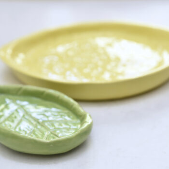 Platito de 10 x 15 cm de cerámica, con cazuela para queso o mermelada.