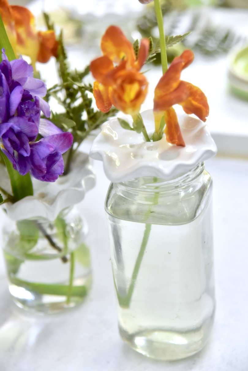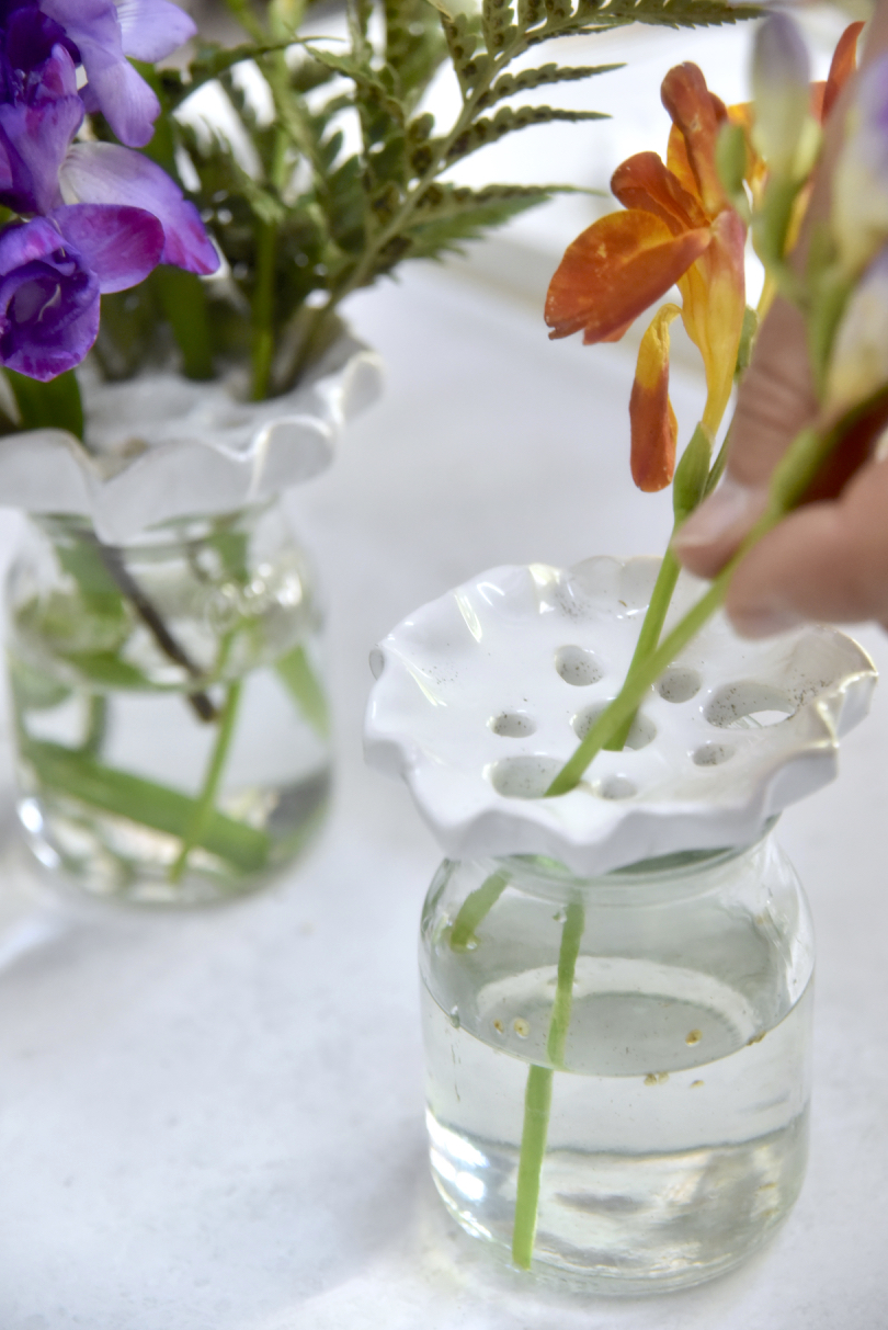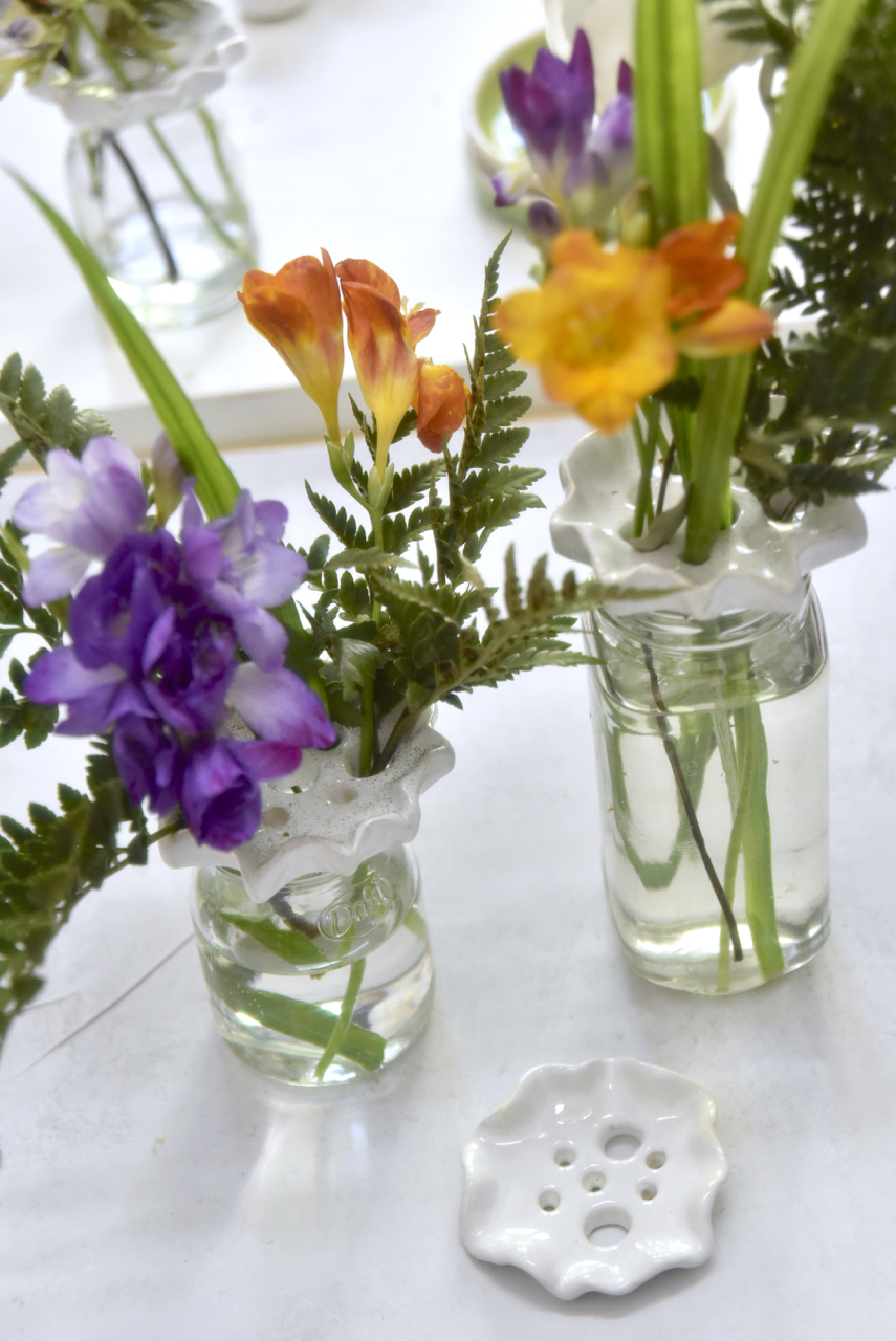 Tapita de cerámica para separar flores y diseñar un centro de mesa.